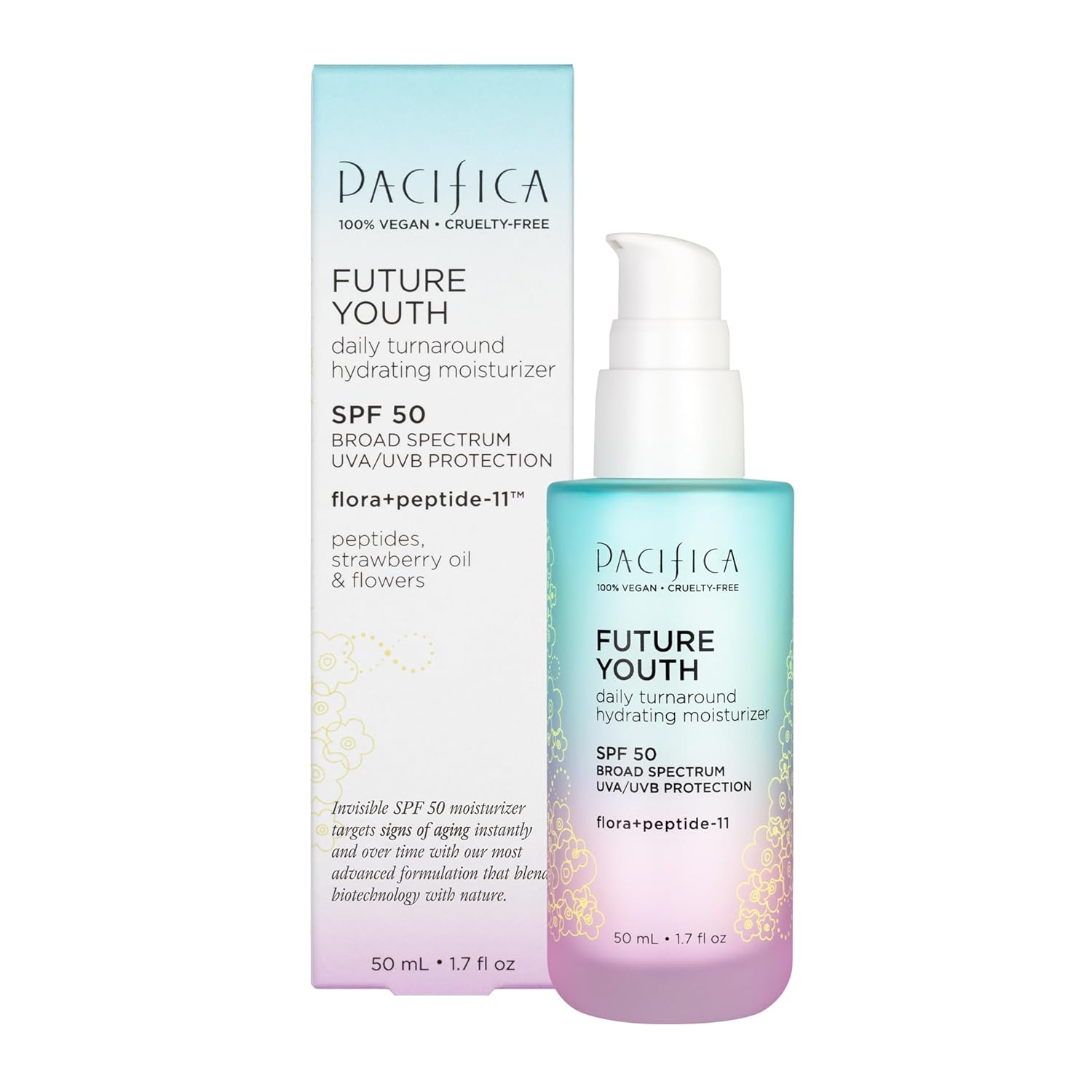 Pacifica Beauty, Future Youth Daily Turnaround Hydrating Moisturizer SPF 50, Lightweight Face Sunscreen, Fast-Absorbing, Fights Signs of Aging, UVA/UVB Broad Spectrum, Chemical Sunscreen, Vegan