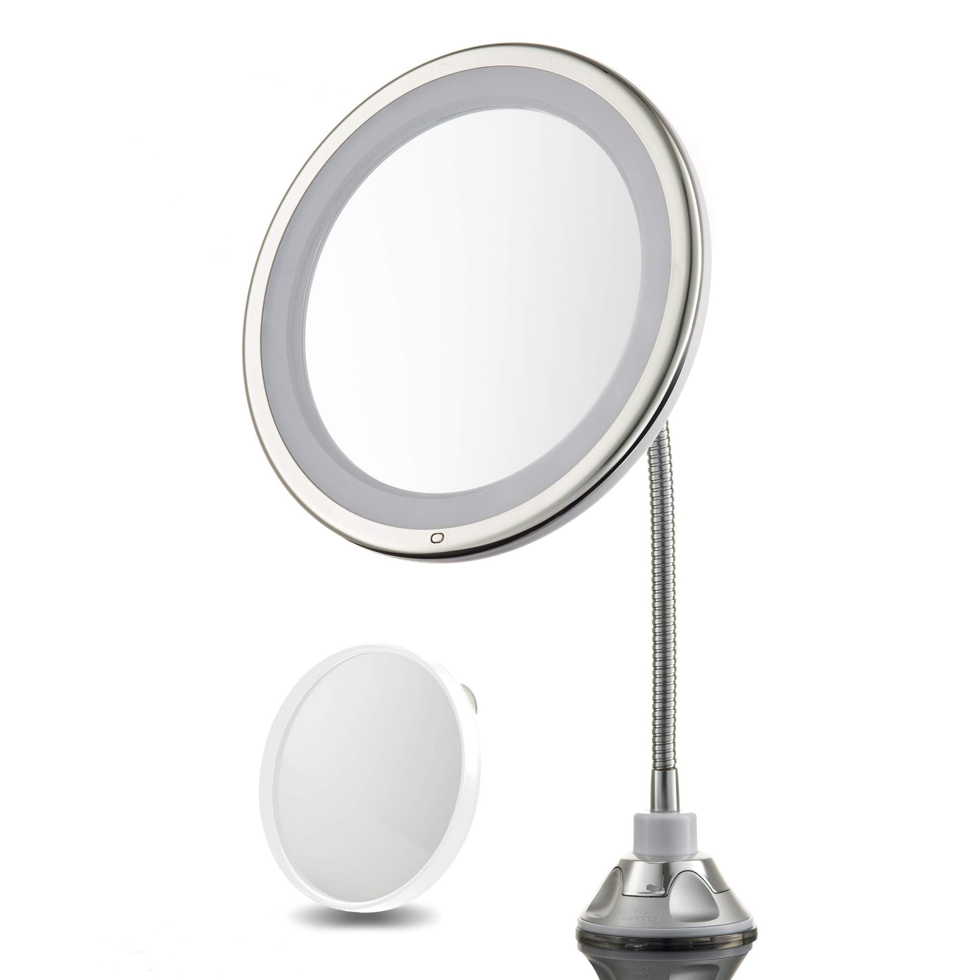 - EASY TO USE & TRAVEL-FRIENDLY MAKEUP MIRROR: Rotatable, adjustable, with a full, 360° swivel, this mirror is your new beauty staple! Thanks to its Easy-Lock Suction Mechanism, it’s easy to place on your vanity, bathroom or any clean, flat surface. Featuring a long, 10” gooseneck, you can adjust your mirror to your preferred viewing angle and marvel in painless beauty sessions. Cordless, collapsible and battery operated, lightweight and compact, making it your best travel makeup companion.