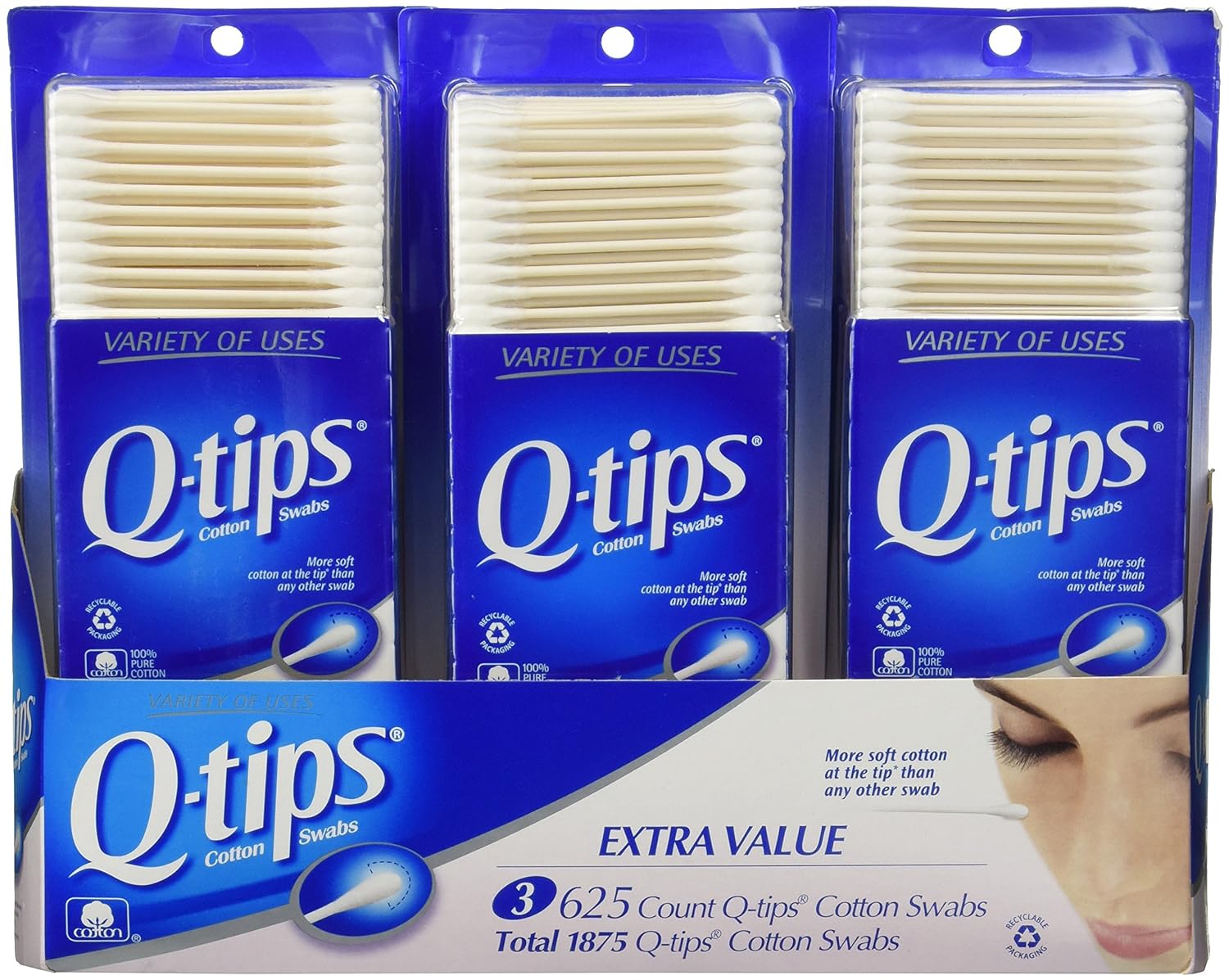 Q-tips Cotton Swabs 3 Packs of 625 Count