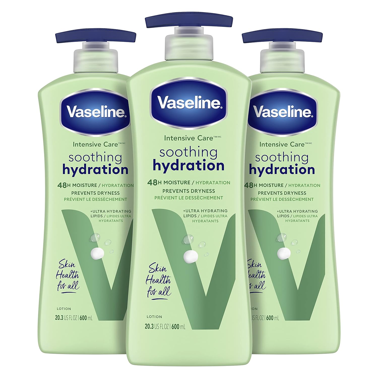 Vaseline Intensive Care Body Lotion for Dry Skin Soothing Hydration Lotion Made with Ultra-Hydrating Lipids + 1% Aloe Vera Extract to Refresh Dehydrated Skin 20.3 oz, Pack of 3